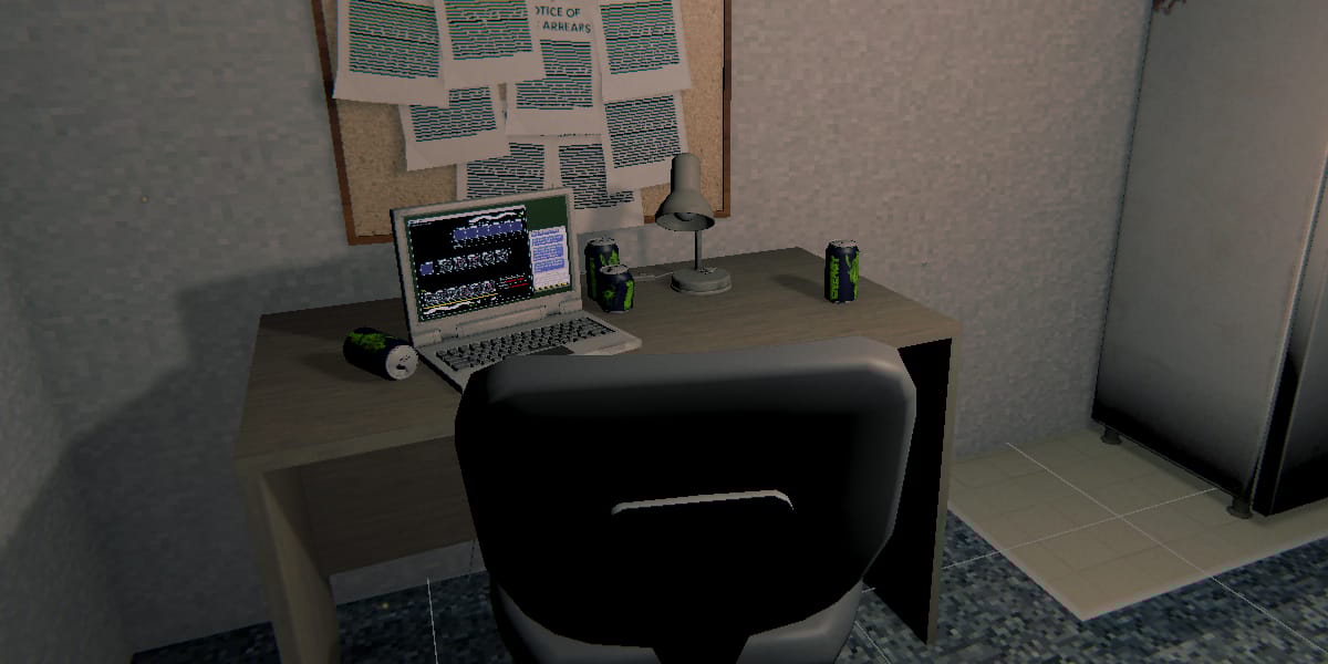 Building upon some experimentation that one of our team, Sean, had been doing with the idea of a single-room game, this new project is about a hacker with some big bills to pay. You’re stuck in your single-room apartment, and you need to hack and scam targets to survive.